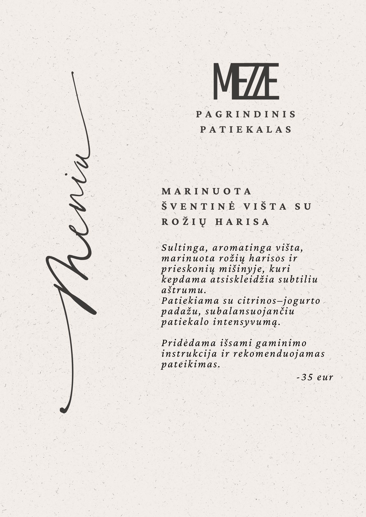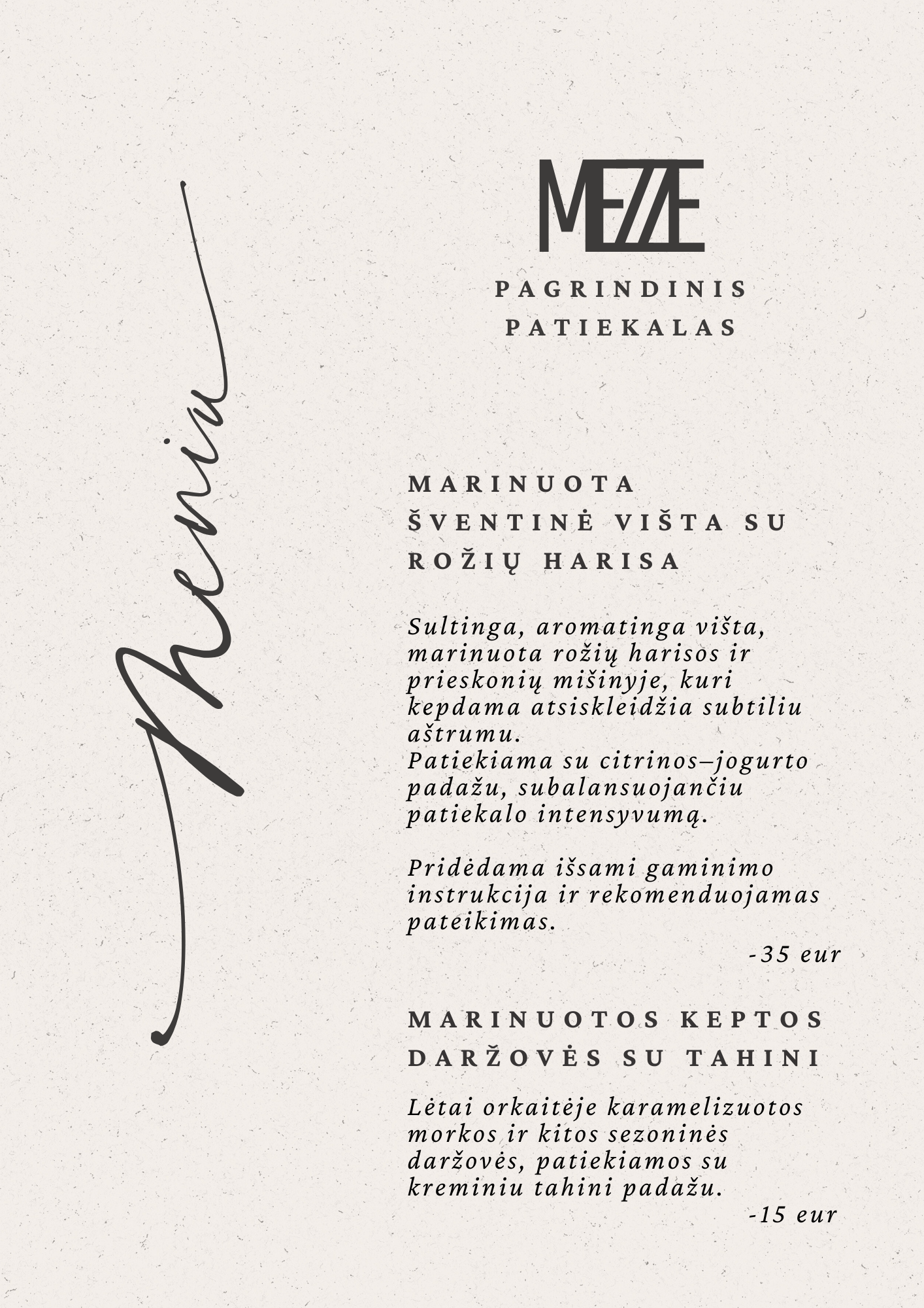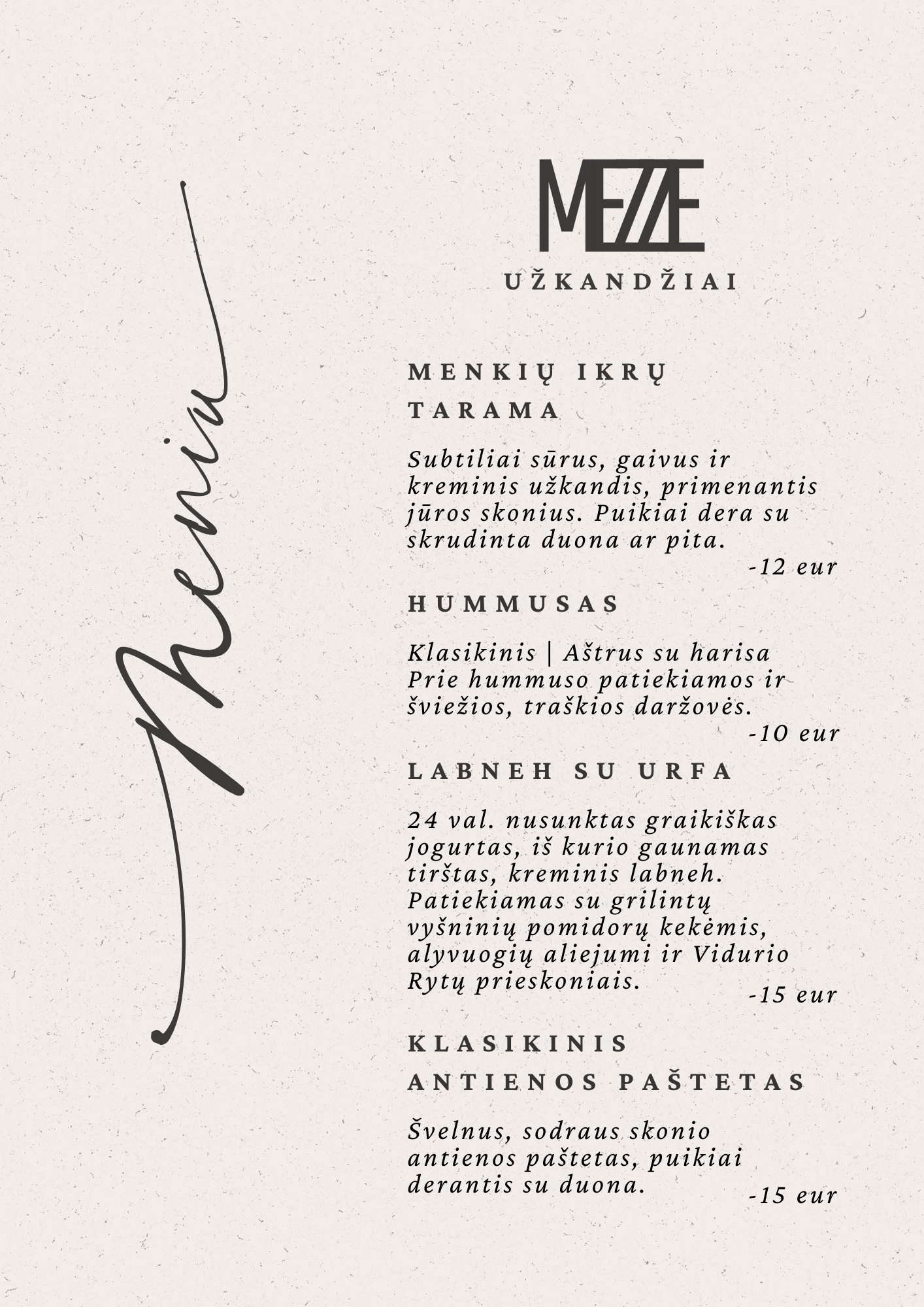 24 val. nusunktas graikiškas jogurtas, iš kurio gaunamas tirštas, kreminis labneh. Patiekiamas su grilintų vyšninių pomidorų kekėmis, alyvuogių aliejumi ir Vidurio Rytų prieskoniais.